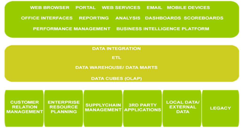 - a category of applications and technologies for gathering, storing, analysing, reporting on and providing access to data to help enterprise users make better business decisions